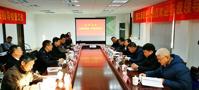 公安部三局馬維亞副局長、浙江省公安廳金伯中副廳長(右三)共同出席在項目部會議室召開的現場混裝炸藥觀摩座談會