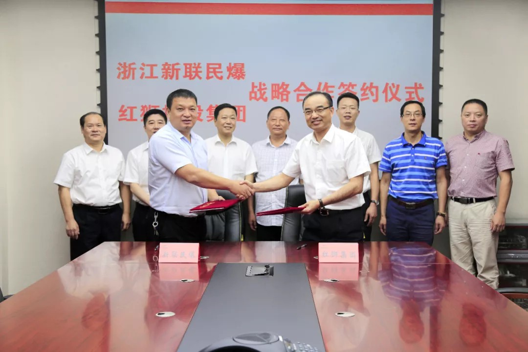 8月9日上午,浙江新聯民爆器材有限公司迎來又一盛事,新聯民爆公司與紅獅控股集團有限公司在紅獅控股集團舉行戰略合作協議簽約儀式,鄭重簽署了戰略合作協議。紅獅控股集團董事長章小華、副總經理郭其正、范煒剛、姜根林,新聯民爆副總經理陳偉、營銷中心經理周榮坤、民爆部副經理于國華、企業發展部吳金華,京安爆破公司總經理申屠建新、副總經理崔曉明參加了簽約儀式。