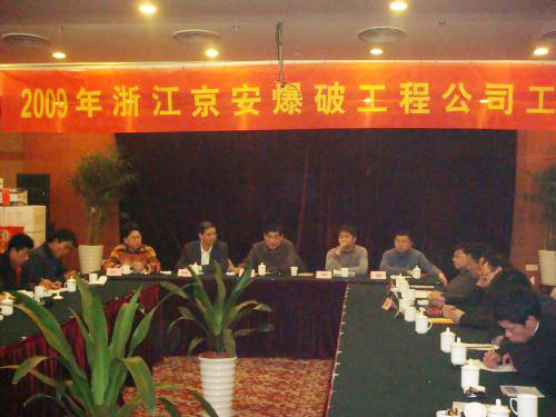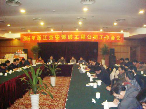 2009年1月16日,公司在杭州召開了2009年工作會議,總公司領導班子全體成員及各職能部門負責人、公司領導及全體員工(廣東項目部派代表)參加了會議。會上,公司各項目部首先匯報了08年工作情況,對09年的工作提出了意見和建議;王霞明總經理根據物產總公司的要求,重點就公司09年的工作思路作了闡述;最后,劉炯董事長對公司2009年的發展做出了進一步的指示,要求“以技術進步為核心,打造科技型企業,立足浙江爆破服務市場,放眼國內甚至國際市場,向成為國內爆破服務核心企業和標桿企業的目標努力。”(公司綜合辦公室)